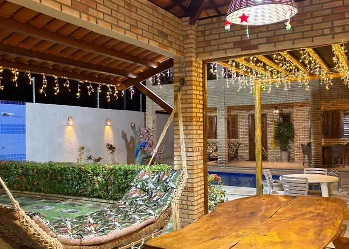 Located 2.6 km from Igreja Matriz Catholic Church, the 5-bedroom Chales 4 Estacoes Villa features a private pool, a solarium, ensuring a relaxing stay. Featuring a patio, this Beberibe villa is situated approximately a 10-minute drive from Praia das Fontes.
